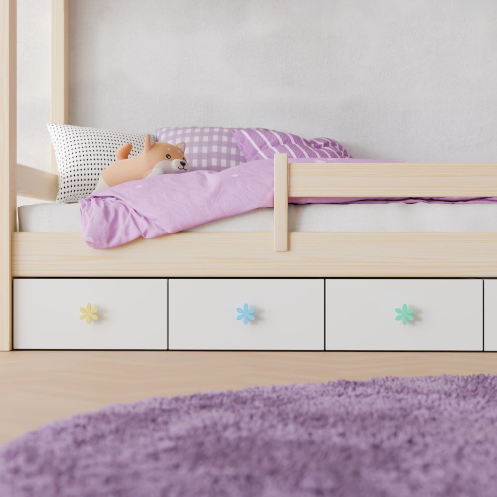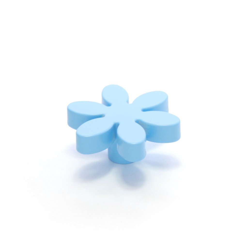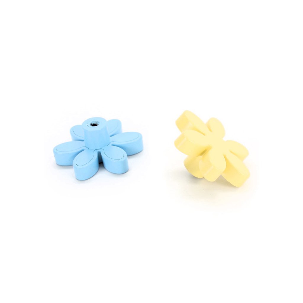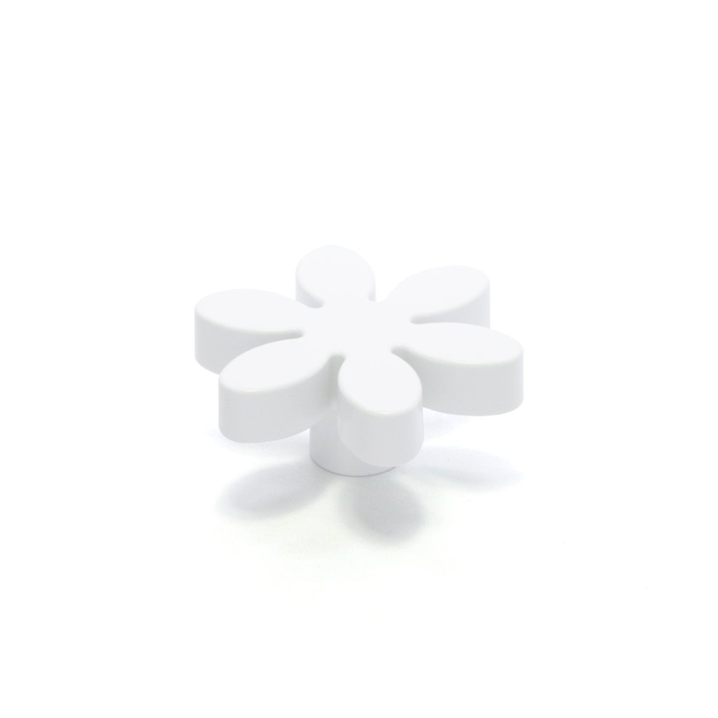 Dětská úchytka, knopka Ruzjdesign 847.24 ve tvaru kytičky je vyrobena z plastu v kombinaci s kovem. Jedná se o jednozávitovou úchytku, která se vyrábí v pěti barvách.
