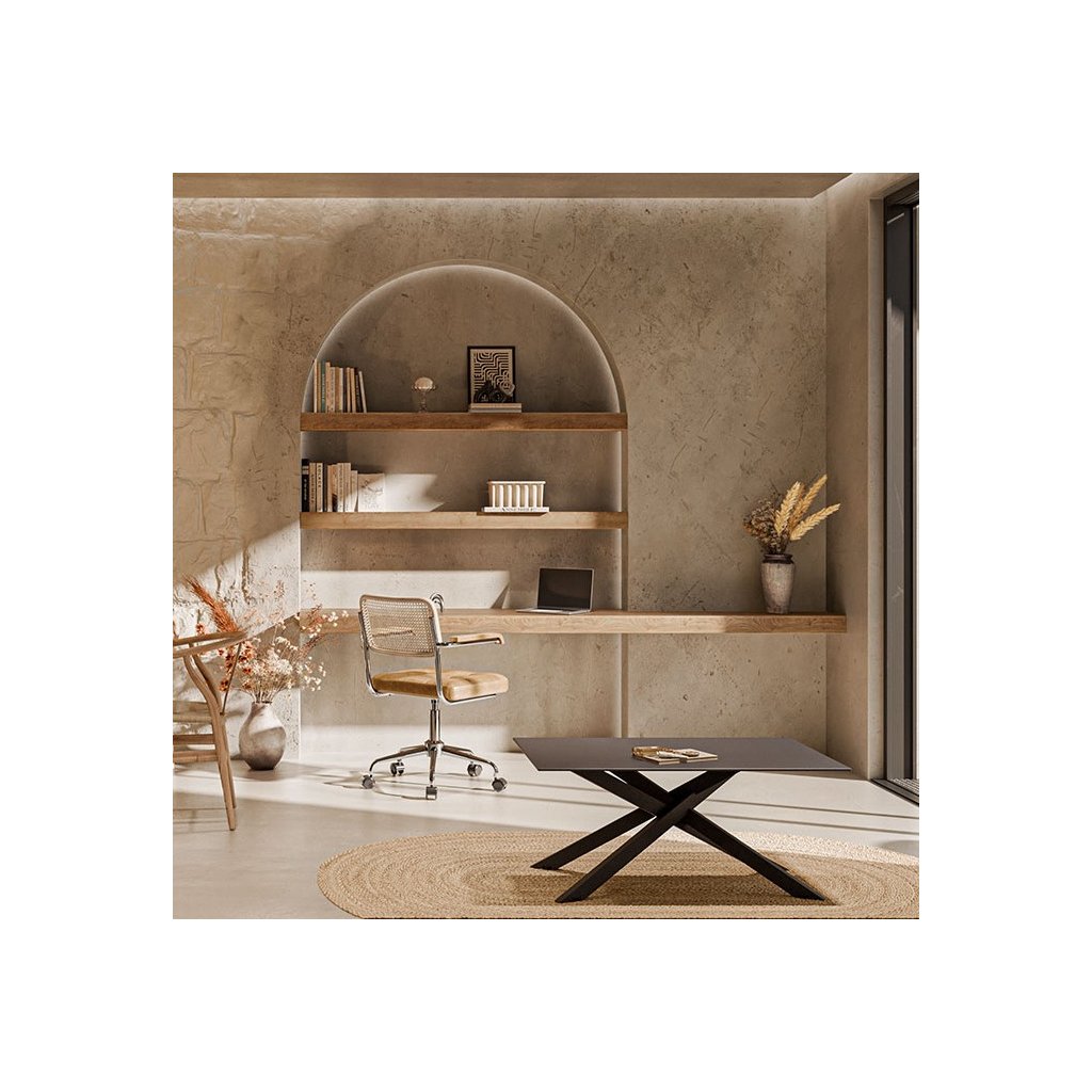 Konkrétně je prezentovaný výrobek zhotoven z ocelových profilů, které jsou lakované práškovou barvou. Stolová podnož se skládá ze 4 dílů, vyznačuje se vynikající stabilitou a ve spodní části noh se nacházejí nivelační šrouby pro jemné nastavení výšky (lze ji upravit až o 10 milimetrů). Designová podnož SPIDER CLUB pak byla navržena tak, aby konstrukce nepřekážela při pohybu lidí kolem stolku. Stolová deska, která není součástí produktu, a která musí mít tloušťku mezi 18 a 40 mm, se uchycuje na malých plochách, jež se nachází na koncích profilů tohoto výrobku. Na této podnoži vynikne obdélníková i oválná deska z nejrůznějších materiálů, kdy záleží čistě na Vašem vkusu, zda zvolíte masivní desku z přírodního dřeva, žuly nebo kompozitu. Vzhledem k tomu, že je produkt dodáván v rozloženém stavu, tak lze bez problémů doručit na místo, kde bude celý stolek nakonec sestaven.