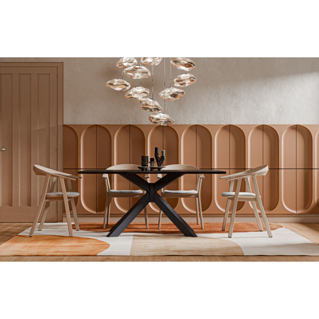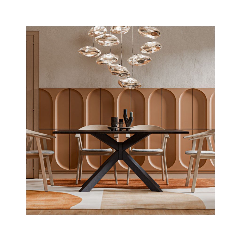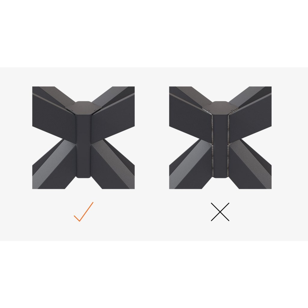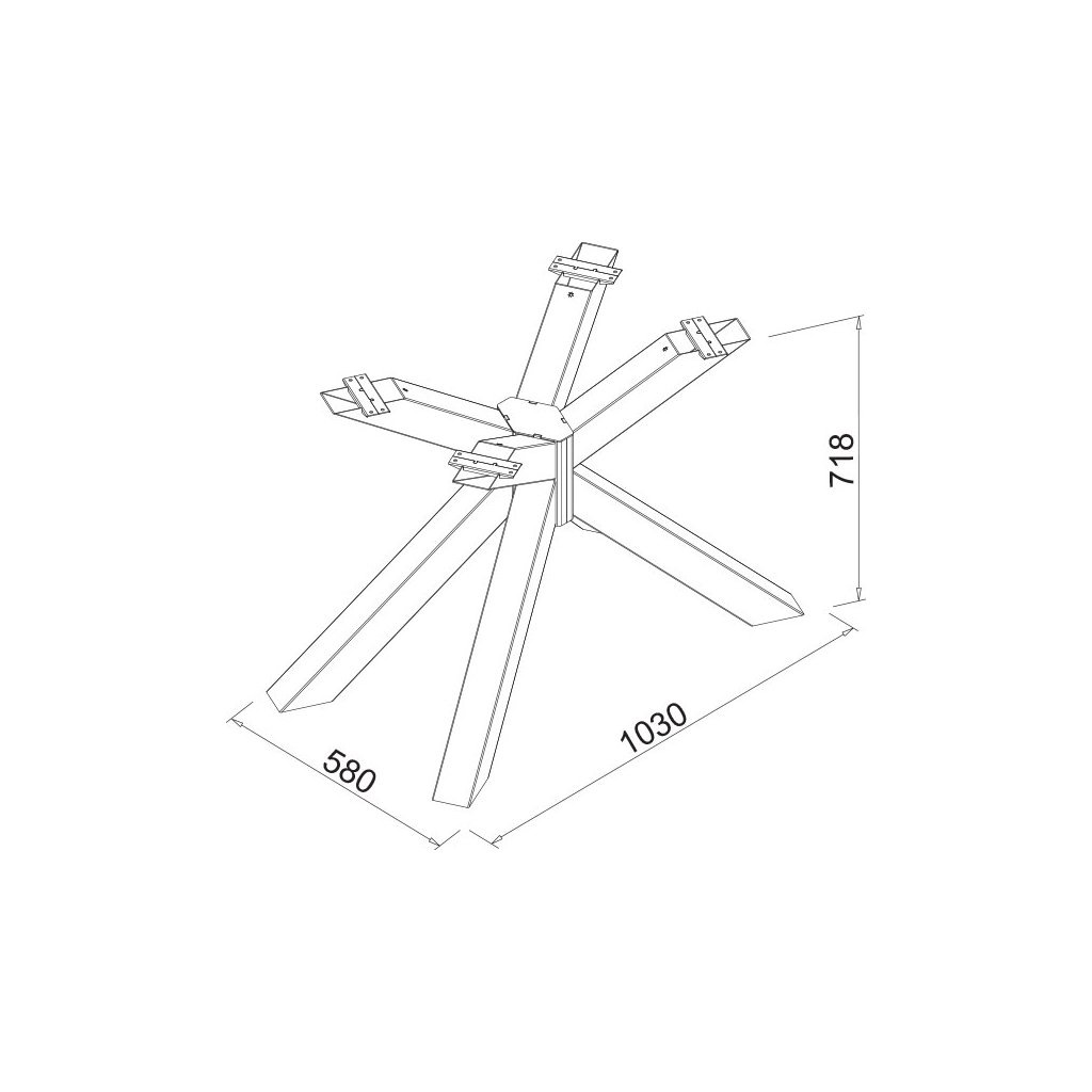 Konkrétně je prezentovaný výrobek zhotoven z ocelových profilů, které jsou lakované práškovou barvou. Stolová podnož se skládá z 9 dílů (1 nosný středový prvek, 4 ramena a 4 nohy), vyznačuje se vynikající stabilitou, snadno se instaluje a ve spodní části noh se nacházejí nivelační šrouby pro jemné nastavení výšky (lze ji upravit až o 10 milimetrů). Designová podnož STAR pak byla navržena tak, aby konstrukce nepřekážela při pohybu lidí kolem stolu. Stolová deska, která není součástí produktu, a která musí mít tloušťku mezi 25 a 50 mm, se uchycuje na malých plochách, jež se nachází na koncích profilů tohoto výrobku. Na této podnoži vynikne obdélníková i oválná deska z nejrůznějších materiálů, kdy záleží čistě na Vašem vkusu, zda zvolíte masivní desku z přírodního dřeva, žuly nebo kompozitu. Vzhledem k tomu, že je produkt dodáván v rozloženém stavu, tak lze bez problémů doručit na místo, kde bude celý stůl nakonec sestaven.